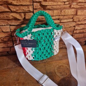 Elisa vagyok, makramé táskák és kiegészítők készítésével foglalkozom. Az általam kitalált táskák egyediek, azonban a poliészter és pamut, zsinór fonalnak köszönhetően, amelyet használok rendkívül tartósak, eme csomózási technika révén pedig szépen, kidolgozott részlet gazdag mintákkal rendelkeznek, melyeket szemenként, saját kézzel készítek. A táskák kivehető, cserélhető, mosható béléssel készítem. A táskák pántjai is variálhatóak, extraként egyedi saját névvel ellátott üdvözlő kártyával vagy pozitív idézetekkel ellátott kártyával, bibliai idézetekkel ellátott kártyával, amely a táskára függesztve szintén cserélhetőek. Tekintsd meg a munkáimat, amiből rendelésre választható színből készítek. Két három cm eltérés lehet a fonalak vastagsága miatt. A táskák elkészítése kb. két hét. Ha egyedi üdvözlő üzenetet szeretnél a kártyára íratni, üzenetben kérem el küldeni. A táskákat postai úton tudom kézbesíteni jelenleg. A táskákhoz külön bélés is rendelhető. Egyenlőre a táskák három méretben kaphatóak.